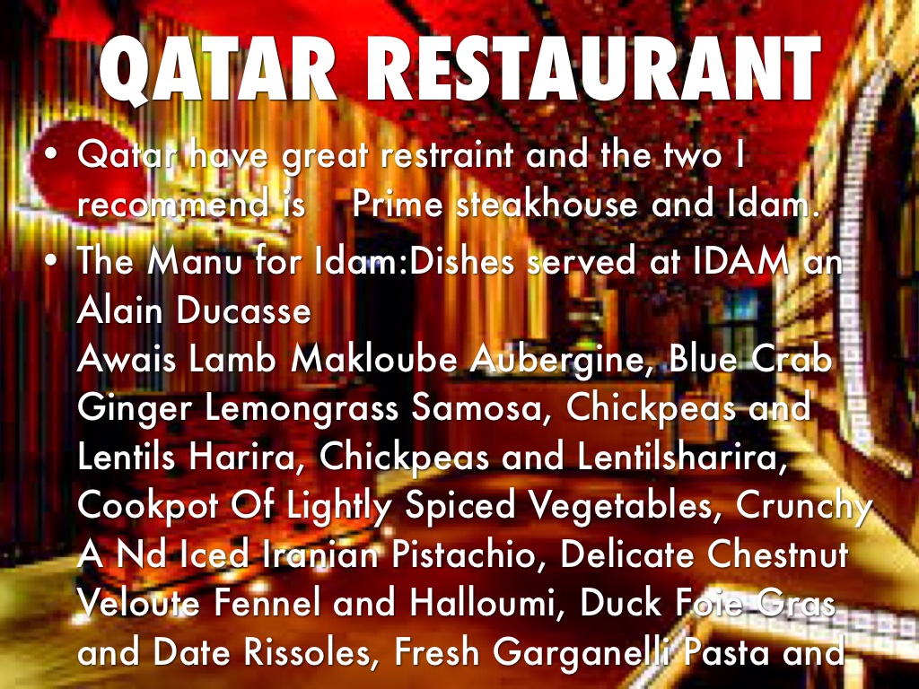 Qatar have great restraint and the two I recommend is Prime steakhouse and Idam.