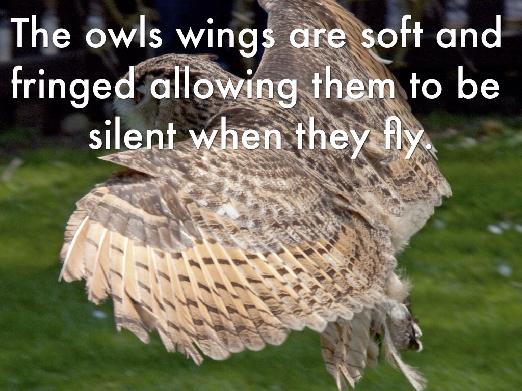 The owls wings are soft and fringed allowing them to be silent when they fly.