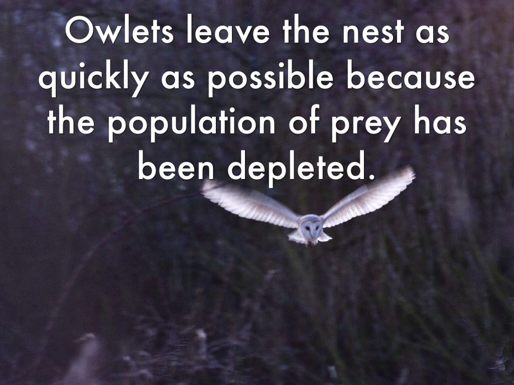 Owlets leave the nest as quickly as possible because the population of prey has been depleted.