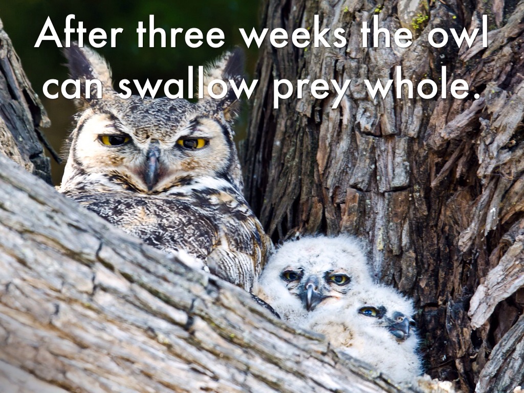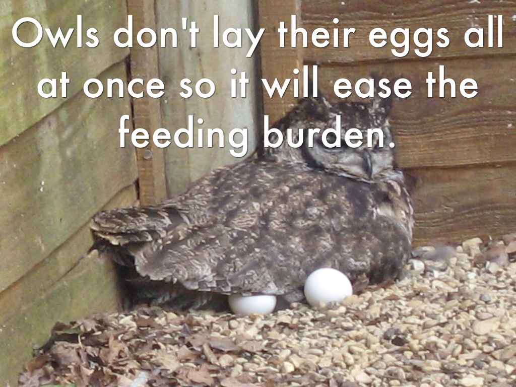 Owls don't lay their eggs all at once so it will ease the feeding burden.