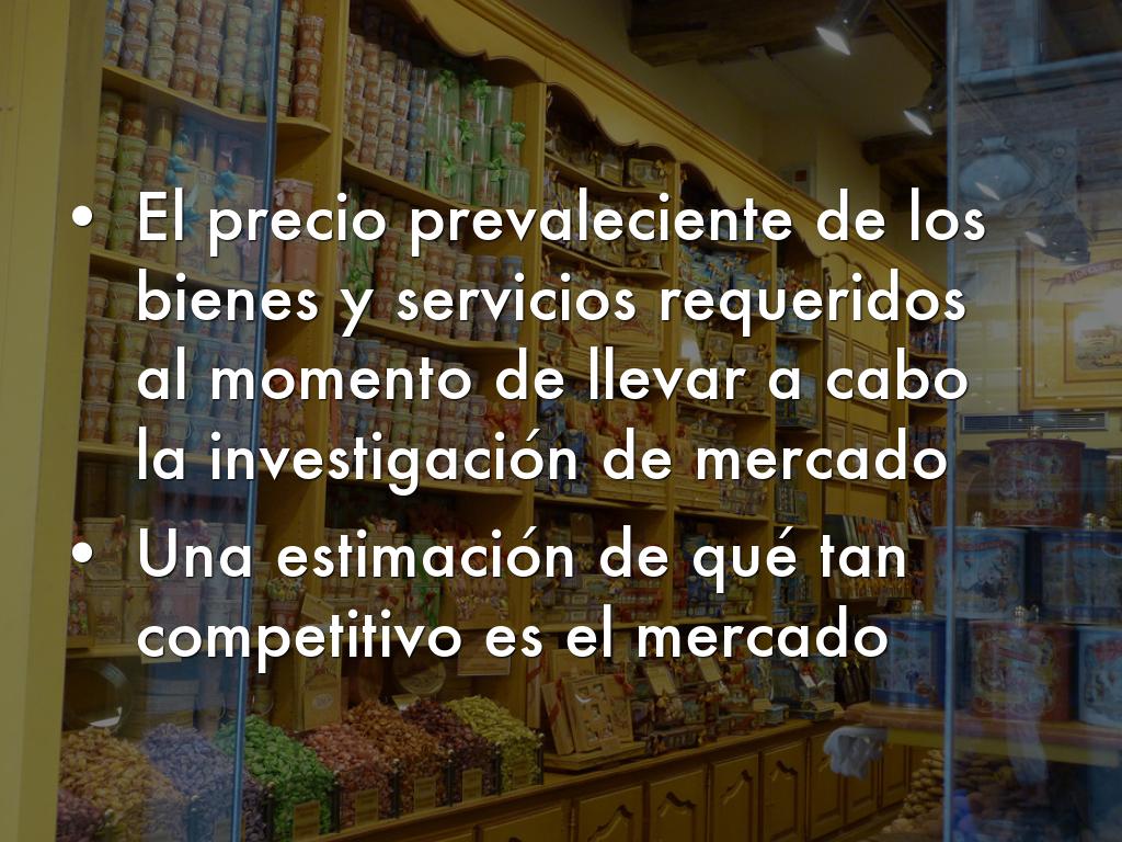 El precio prevaleciente de los bienes y servicios requeridos al momento de llevar a cabo la investigación de mercado