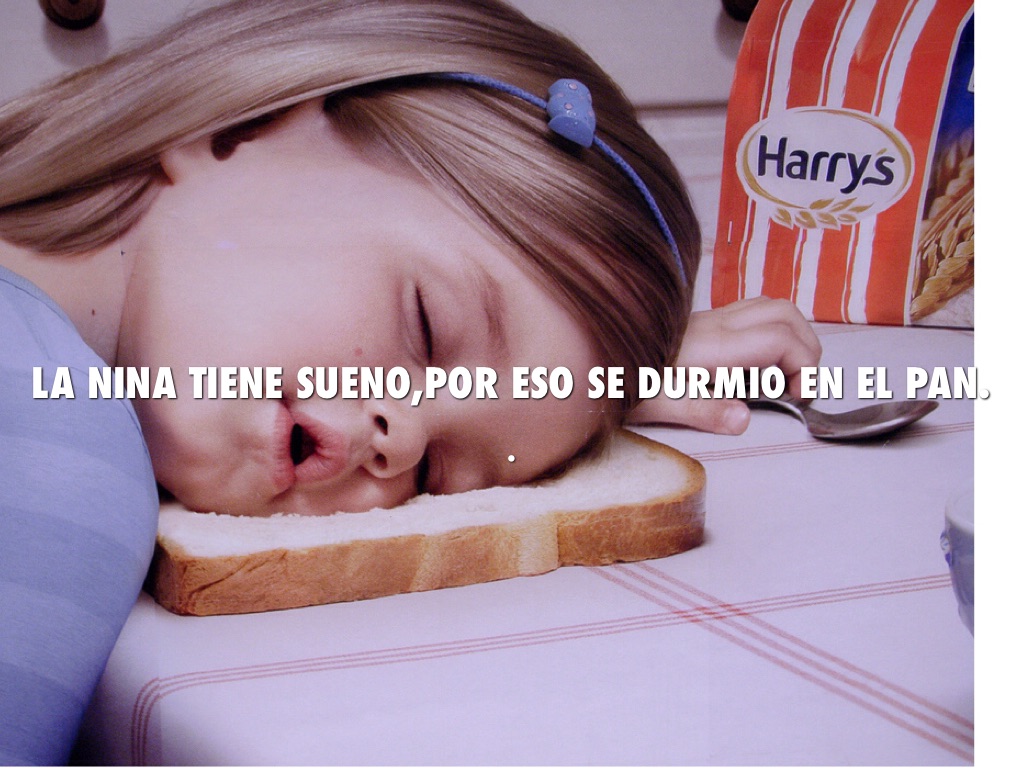 LA NINA TIENE SUENO,POR ESO SE DURMIO EN EL PAN.