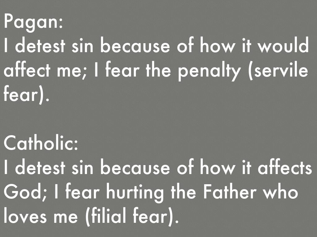 I detest sin because of how it affects God; I fear hurting the Father who loves me (filial fear).