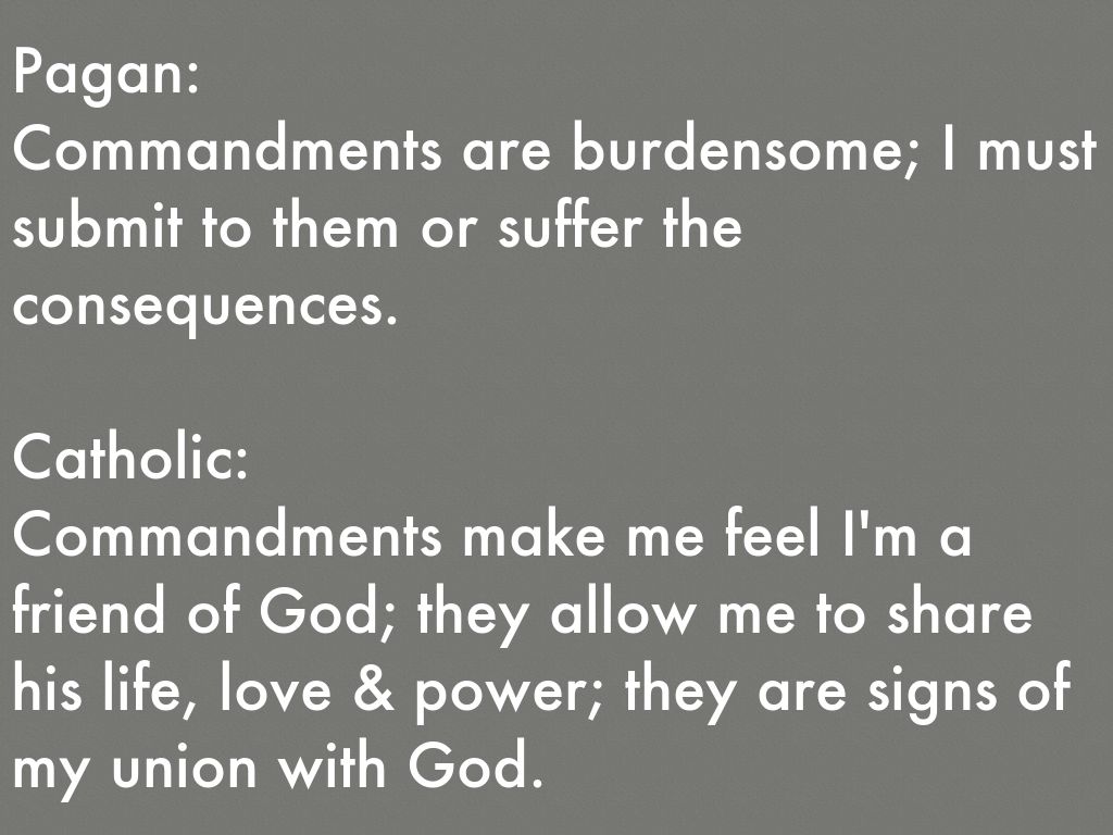 Commandments are burdensome; I must submit to them or suffer the consequences.