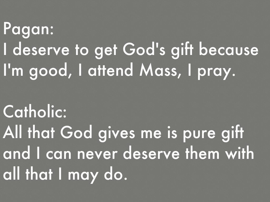 I deserve to get God's gift because I'm good, I attend Mass, I pray.