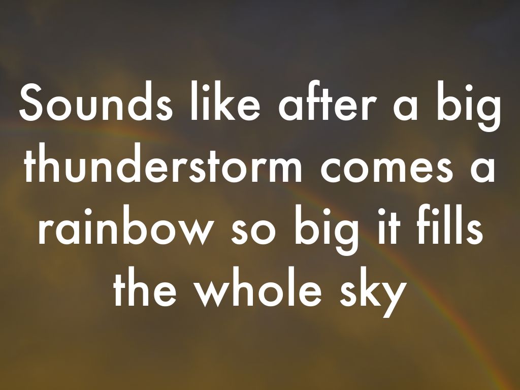 Sounds like after a big thunderstorm comes a rainbow so big it fills the whole sky