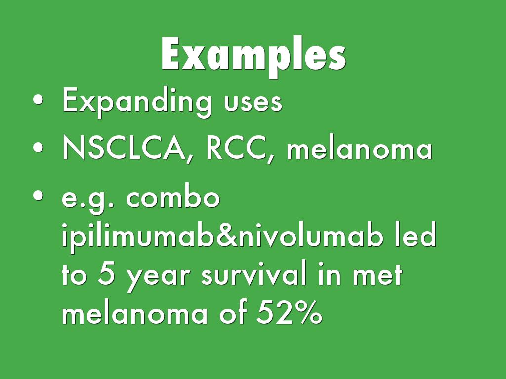 e.g. combo ipilimumab&nivolumab led to 5 year survival in met melanoma of 52%