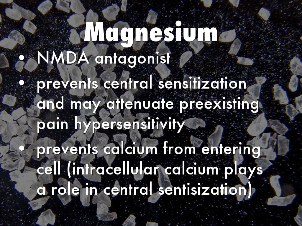 prevents calcium from entering cell (intracellular calcium plays a role in central sentisization)