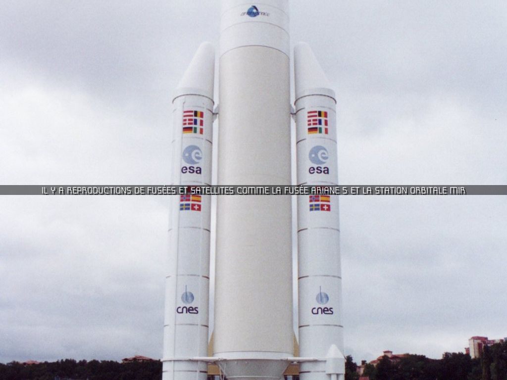 Il y a reproductions de fusèes et satellites comme la fusèe ariane 5 et la station orbitale mir