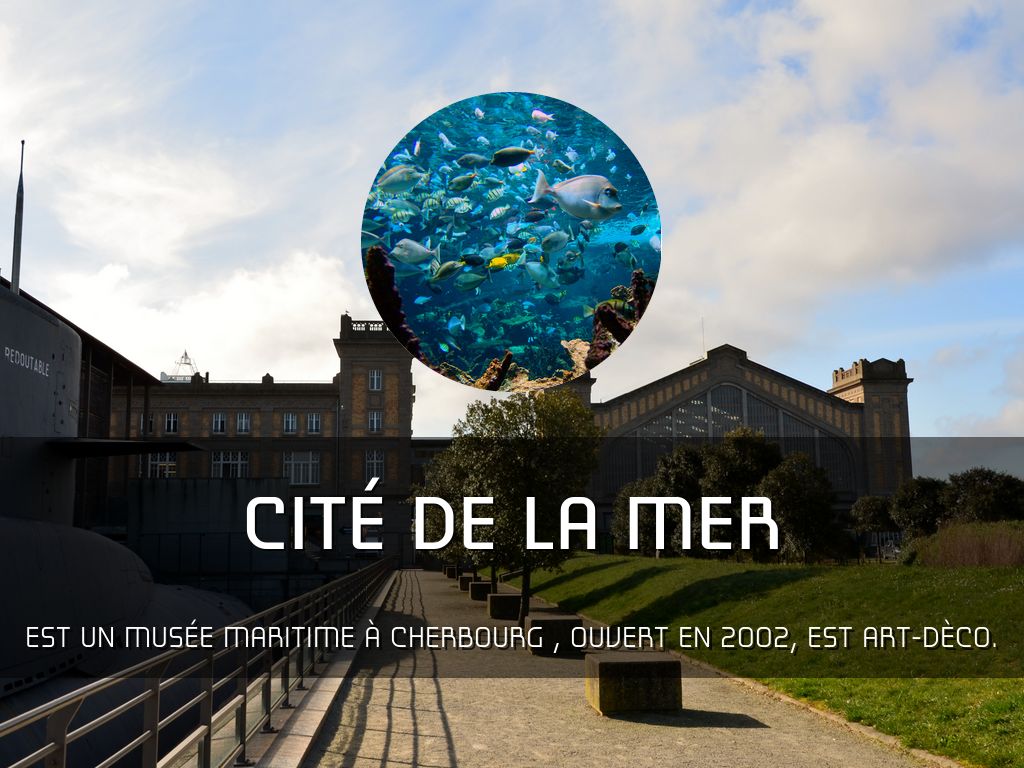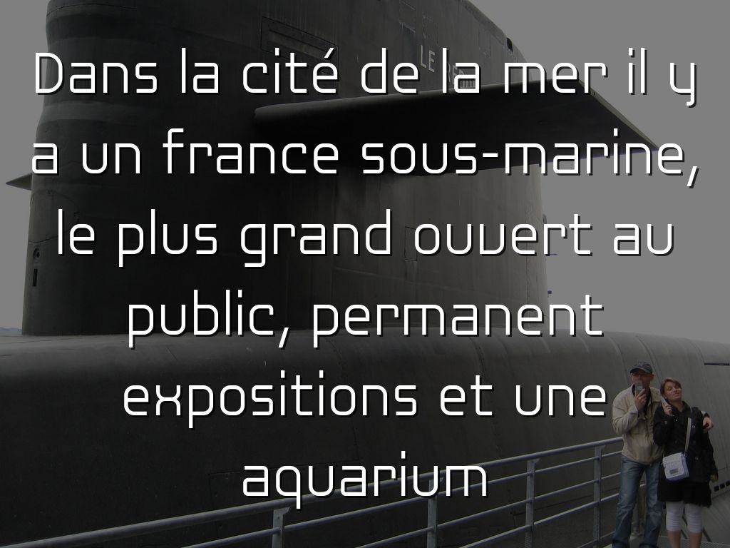 Dans la cité de la mer il y a un france sous-marine, le plus grand ouvert au public, permanent expositions et une aquarium