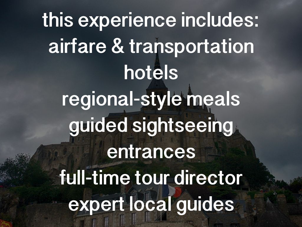 this experience includes: airfare & transportation hotels regional-style meals guided sightseeing entrances full-time tour director expert local guides