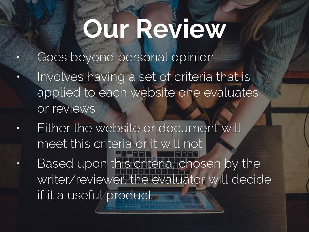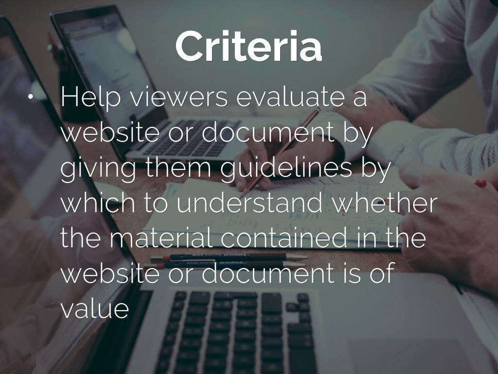 Help viewers evaluate a website or document by giving them guidelines by which to understand whether the material contained in the website or document is of value