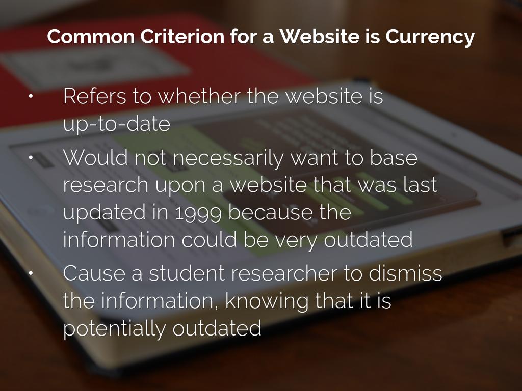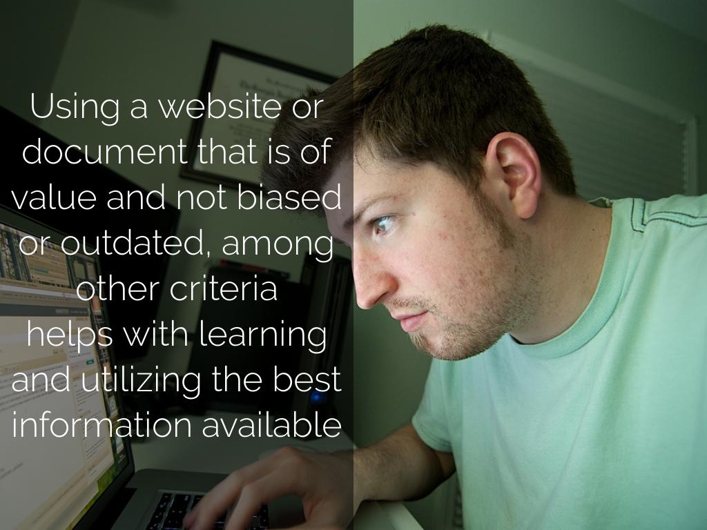Using a website or document that is of value and not biased or outdated, among other criteria helps with learning and utilizing the best information available