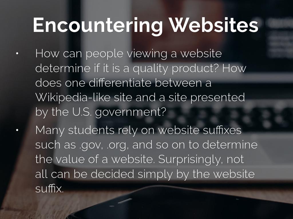 Many students rely on website suffixes such as .gov, .org, and so on to determine the value of a website. Not all can be decided simply by the website suffix