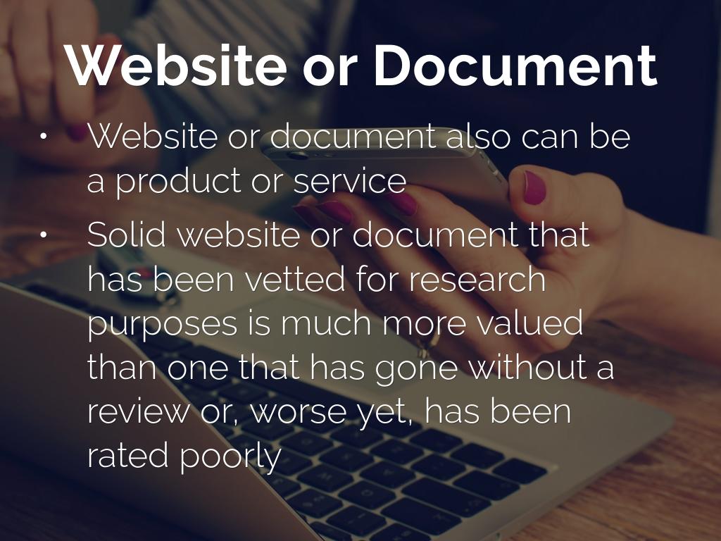 Solid website or document that has been vetted for research purposes is much more valued than one that has gone without a review or, worse yet, has been rated poorly