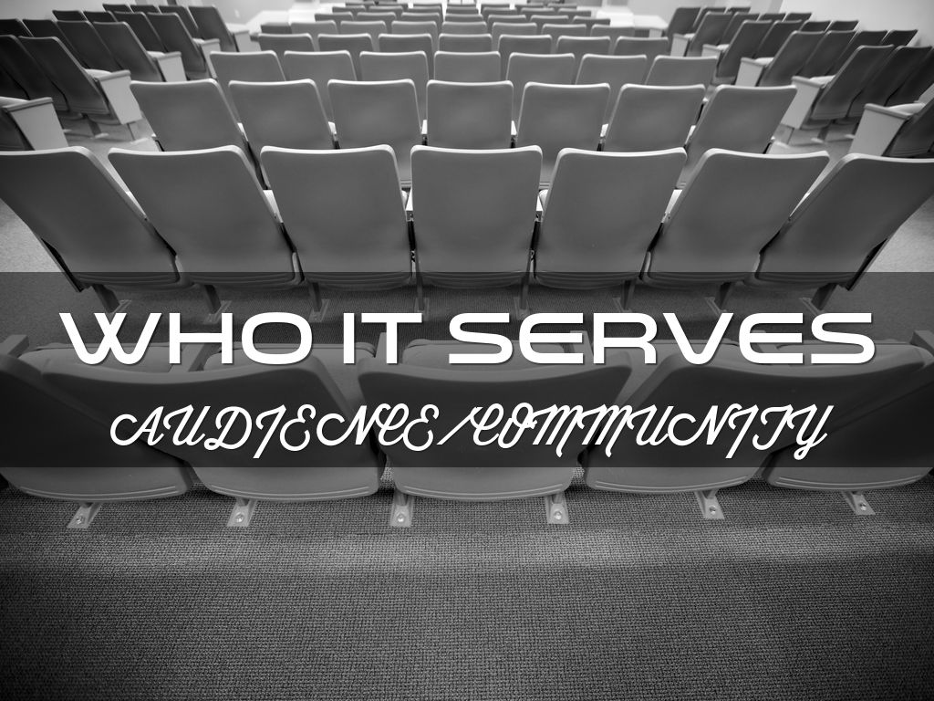 Make clear who this project/service/product is aimed at. Is it for a particular geographic audience, or a particular demographic group? Or is it for people with a particular interest (i.e. a psychographic?) Or maybe it's for people who have a particular problem or a certain need. Make clear who you are building this product/service/project for so that it's clear who will benefit from it.