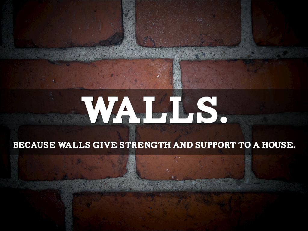 BECAUSE WALLS GIVE STRENGTH AND SUPPORT TO A HOUSE.