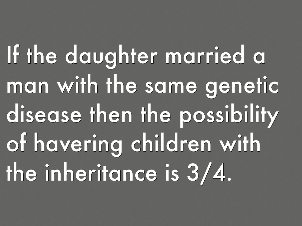 If the daughter married a man with the same genetic disease then the possibility of havering children with the inheritance is 3/4.
