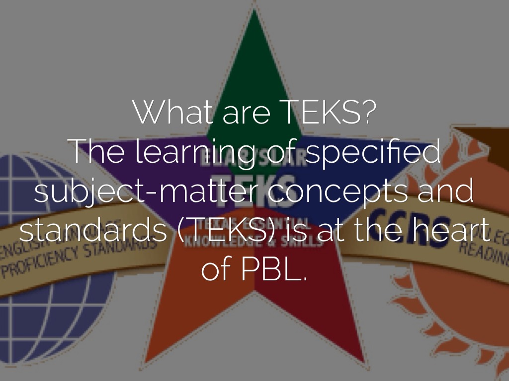 The learning of specified subject-matter concepts and standards (TEKS) is at the heart of PBL.