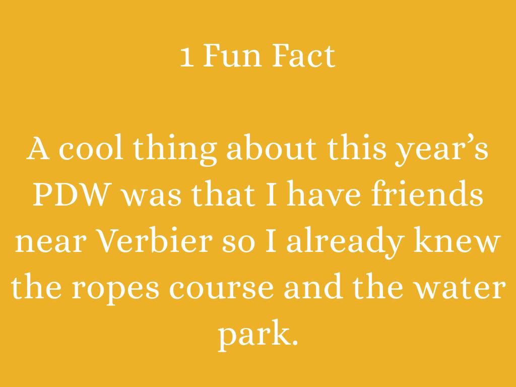 A cool thing about this year’s PDW was that I have friends near Verbier so I already knew the ropes course and the water park.