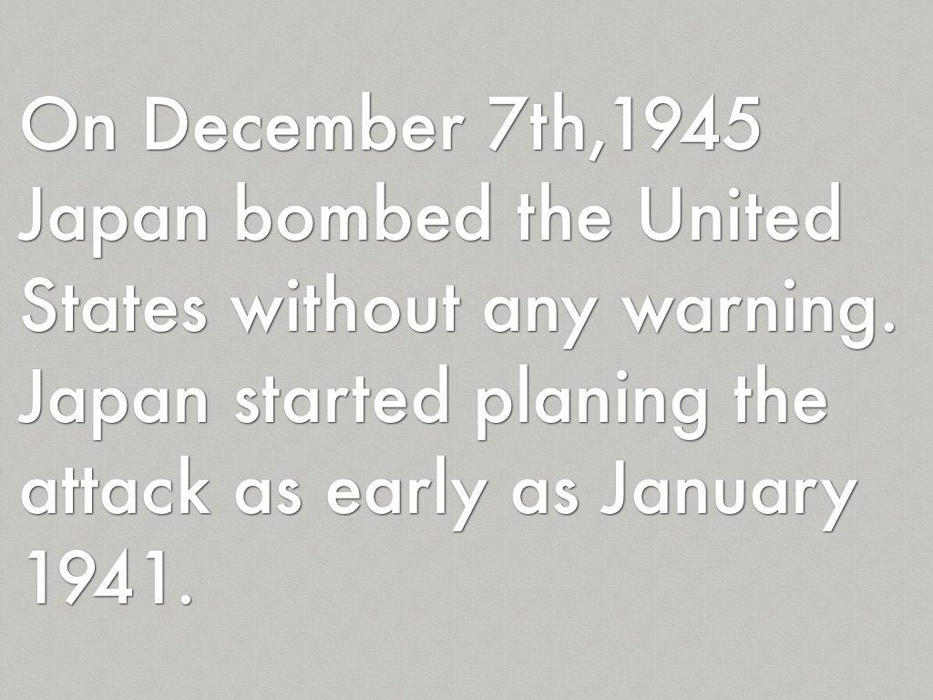 On December 7th,1945 Japan bombed the United States without any warning. Japan started planing the attack as early as January 1941.