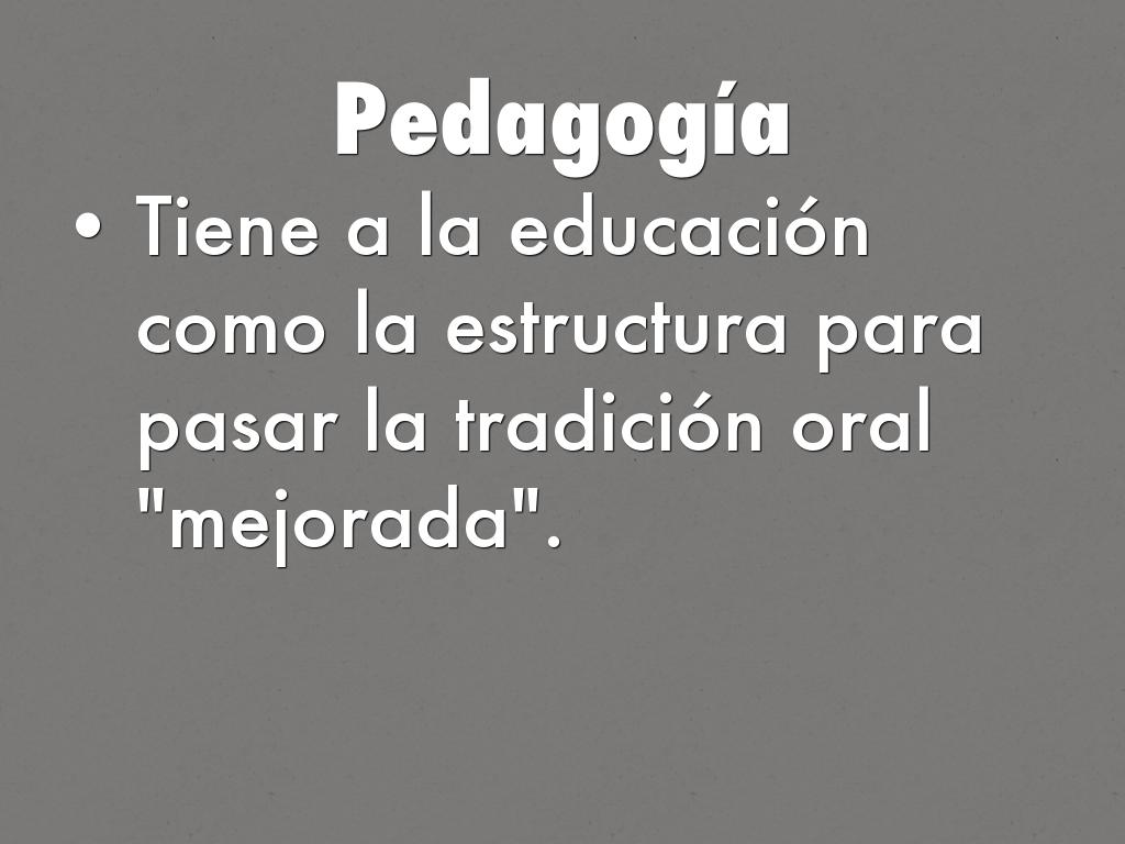 Tiene a la educación como la estructura para pasar la tradición oral "mejorada".