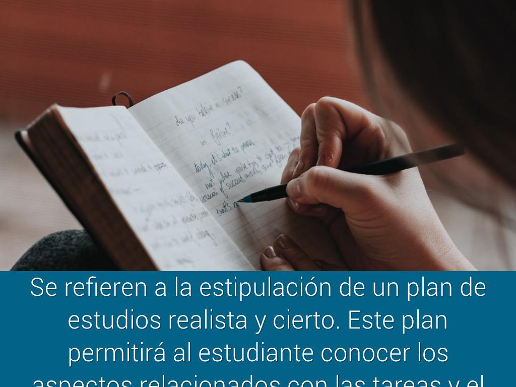 Se refieren a la estipulación de un plan de estudios realista y cierto. Este plan permitirá al estudiante conocer los aspectos relacionados con las tareas y el contexto en que deben ser realizadas.