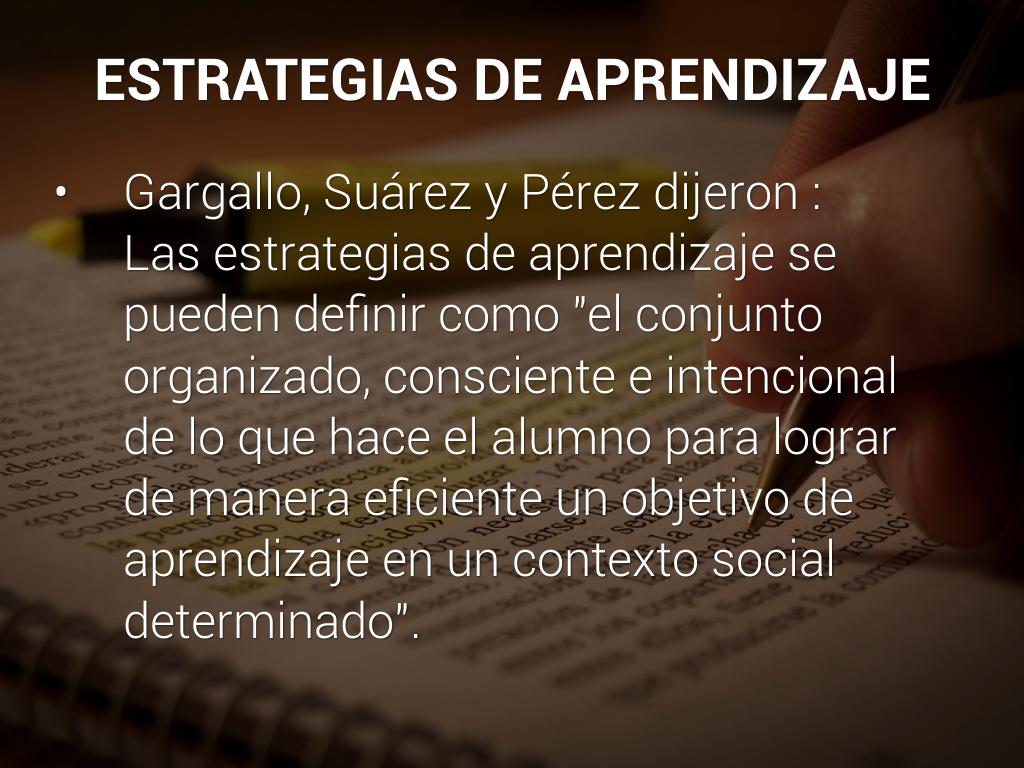 Las estrategias de aprendizaje se pueden definir como "el conjunto organizado, consciente e intencional de lo que hace el alumno para lograr de manera eficiente un objetivo de aprendizaje en un contexto social determinado".