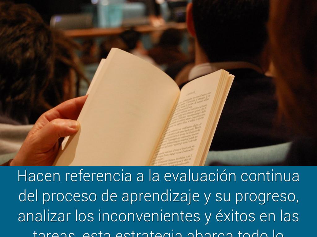 Hacen referencia a la evaluación continua del proceso de aprendizaje y su progreso, analizar los inconvenientes y éxitos en las tareas, esta estrategia abarca todo lo correspondiente a la toma de decisiones.
