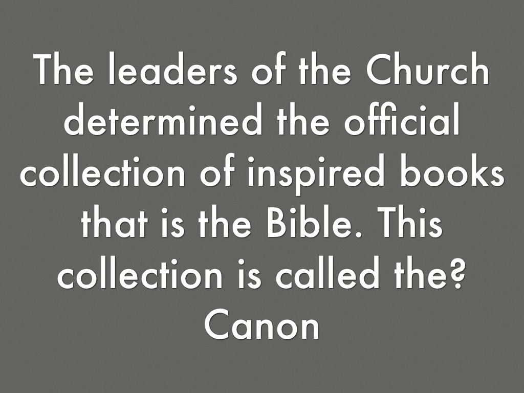 The leaders of the Church determined the official collection of inspired books that is the Bible. This collection is called the? Canon