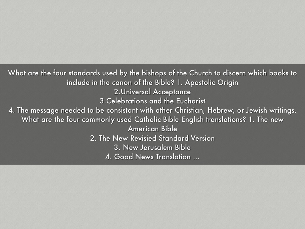 What are the four commonly used Catholic Bible English translations? 1. The new American Bible