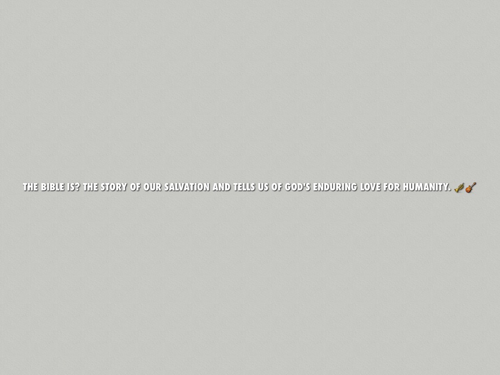 THE BIBLE IS? THE STORY OF OUR SALVATION AND TELLS US OF GOD'S ENDURING LOVE FOR HUMANITY.