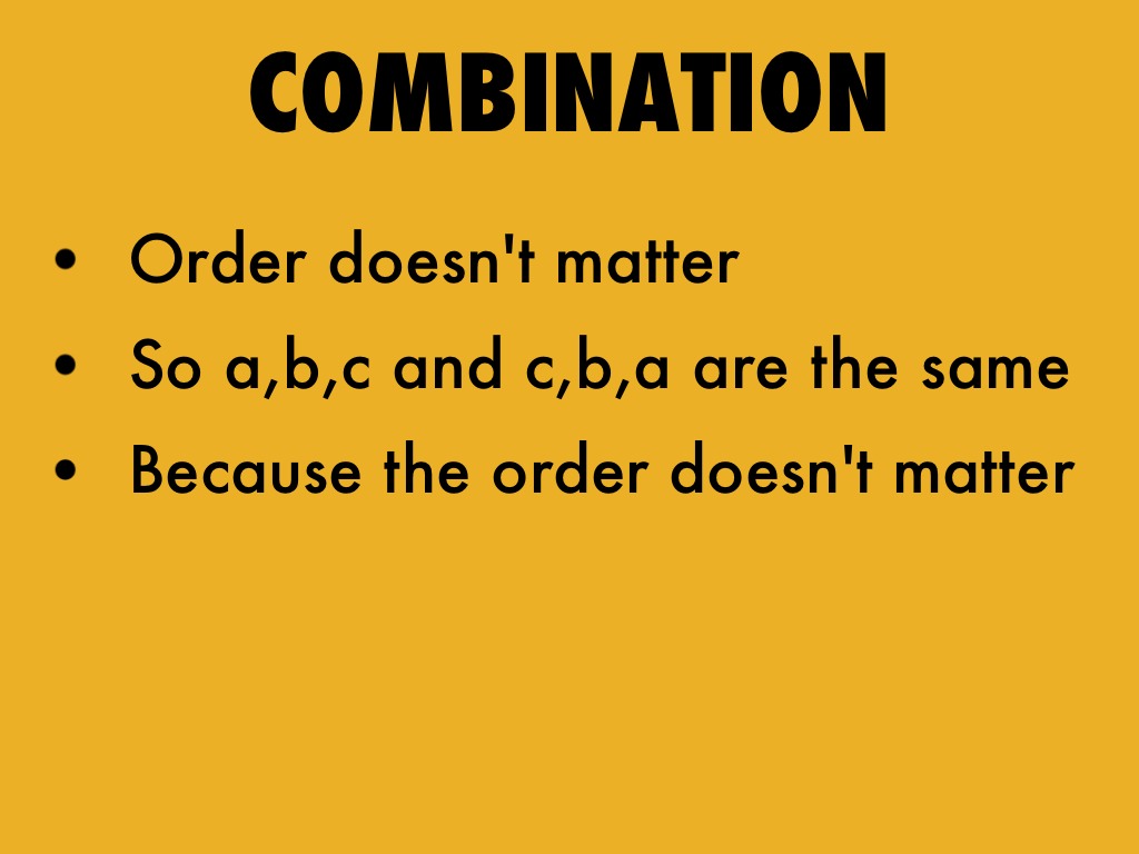 A,B,C AND C,B,A ARE DIFFERENT BECAUSE ORDER DOES MATTER