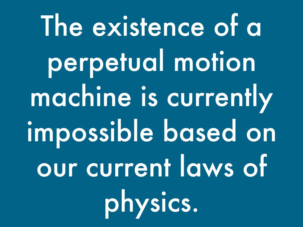 The existence of a perpetual motion machine is currently impossible based on our current laws of physics.