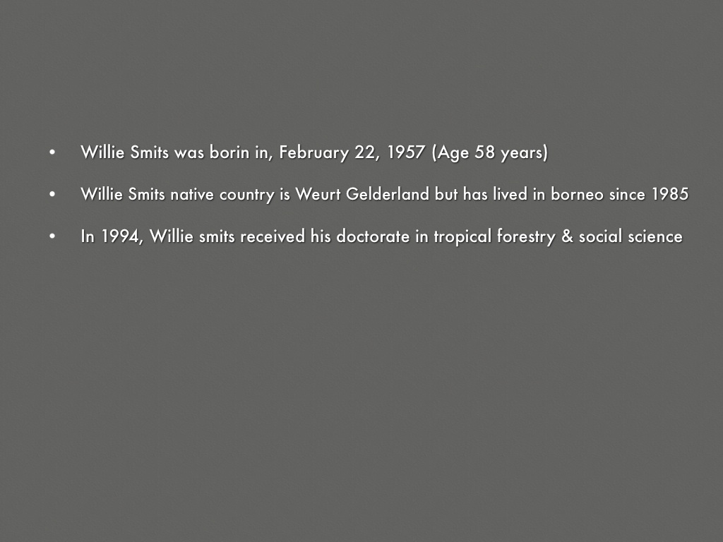 Willie Smits was borin in, February 22, 1957 (Age 58 years)