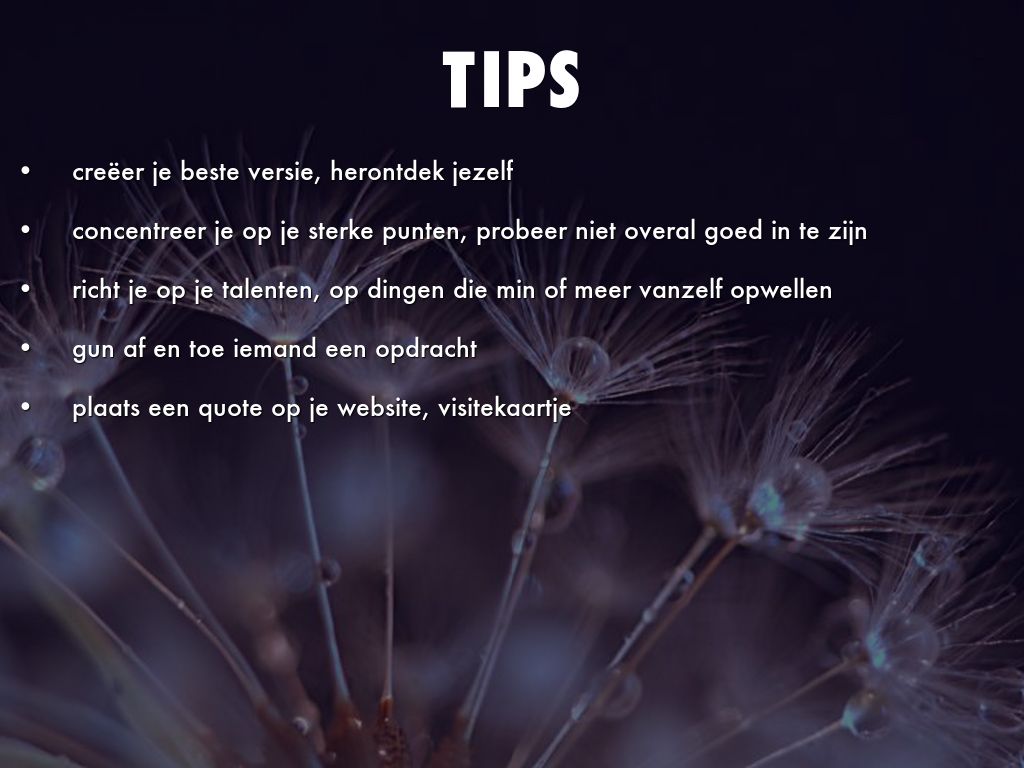 concentreer je op je sterke punten, probeer niet overal goed in te zijn