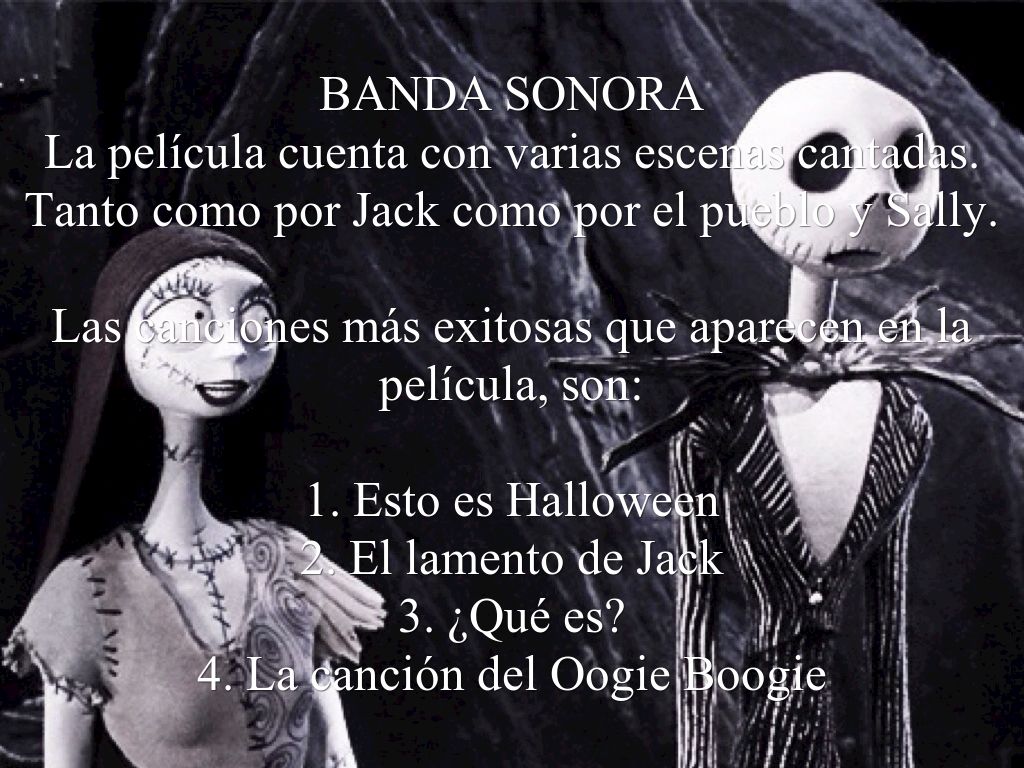 La película cuenta con varias escenas cantadas. Tanto como por Jack como por el pueblo y Sally.