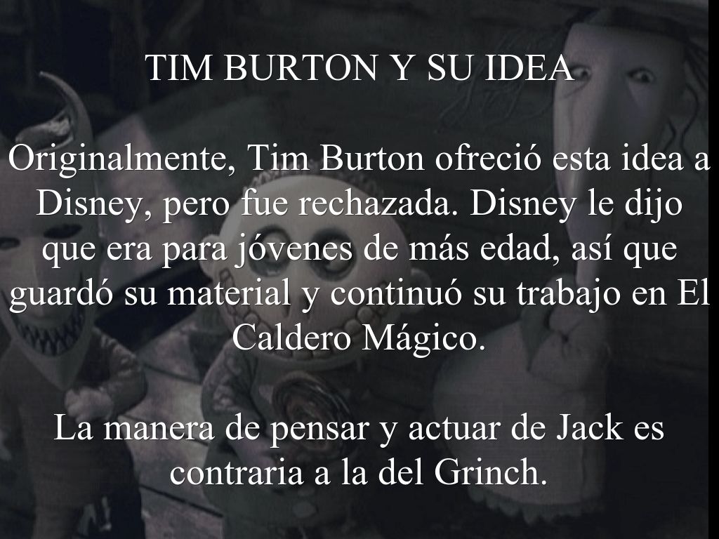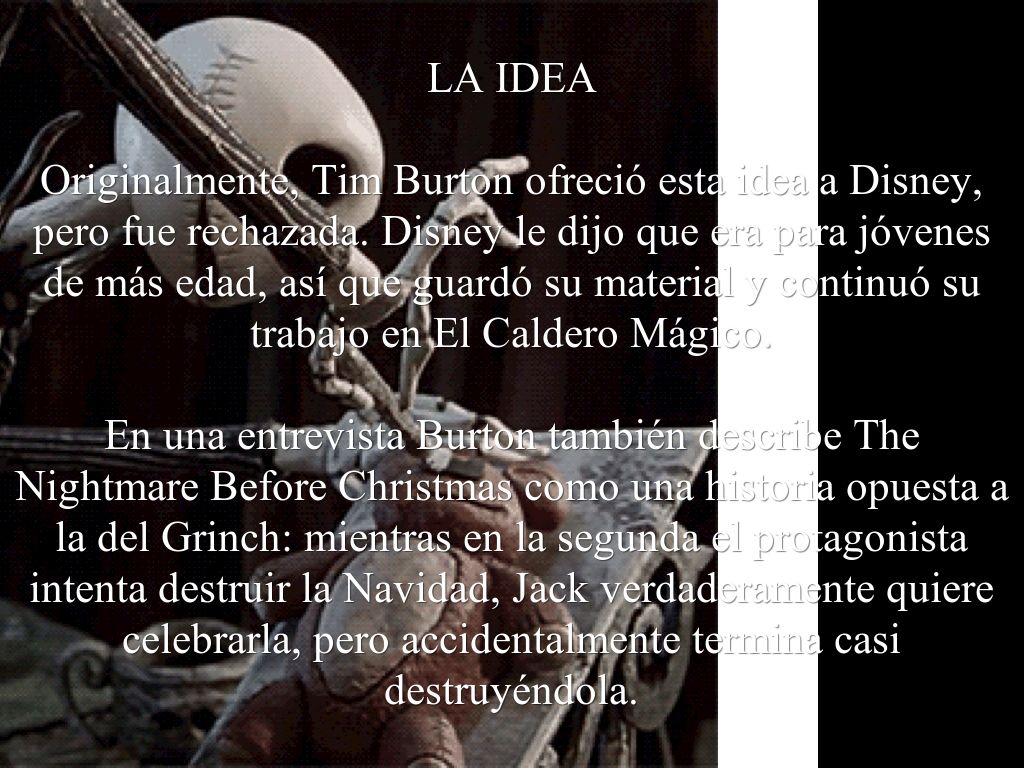 Originalmente, Tim Burton ofreció esta idea a Disney, pero fue rechazada. Disney le dijo que era para jóvenes de más edad, así que guardó su material y continuó su trabajo en El Caldero Mágico.