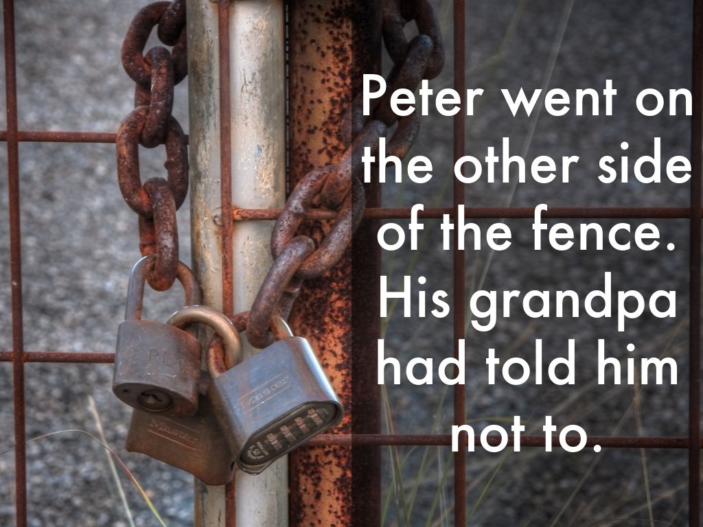 Peter went on the other side of the fence. His grandpa had told him not to.