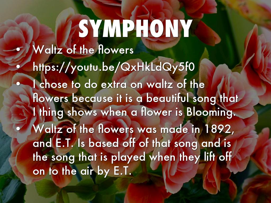 I chose to do extra on waltz of the flowers because it is a beautiful song that I thing shows when a flower is Blooming.