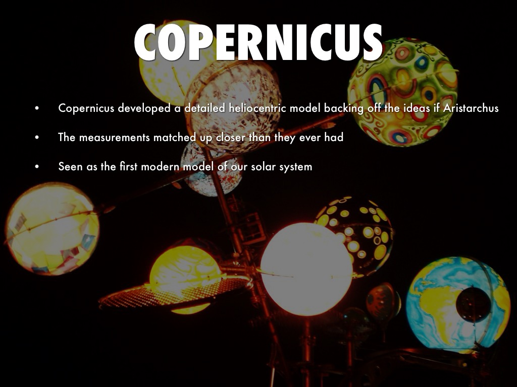 Copernicus developed a detailed heliocentric model backing off the ideas if Aristarchus