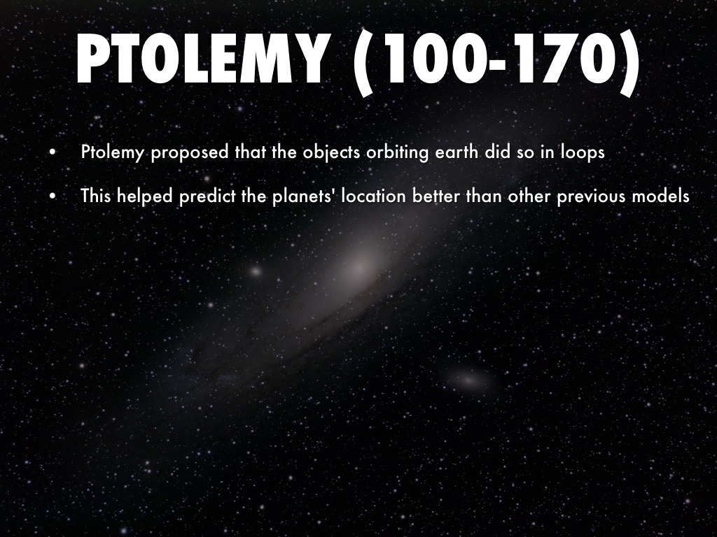 Ptolemy proposed that the objects orbiting earth did so in loops