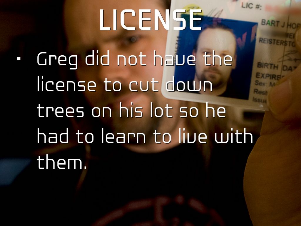Greg did not have the license to cut down trees on his lot so he had to learn to live with them.