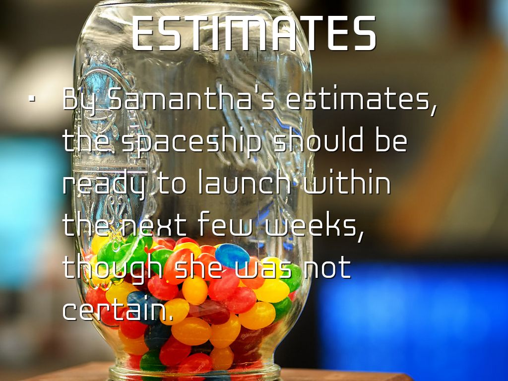 By Samantha's estimates, the spaceship should be ready to launch within the next few weeks, though she was not certain.