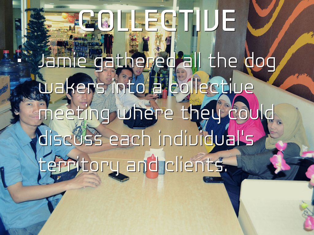 Jamie gathered all the dog wakers into a collective meeting where they could discuss each individual's territory and clients.