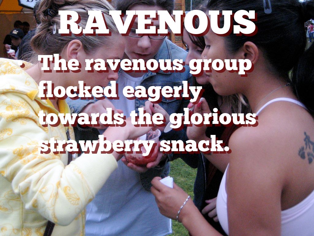 The ravenous group flocked eagerly towards the glorious strawberry snack.