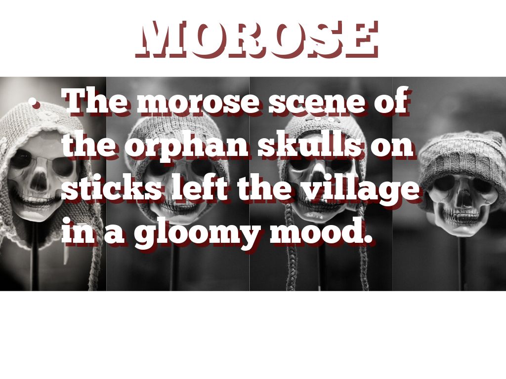 The morose scene of the orphan skulls on sticks left the village in a gloomy mood.