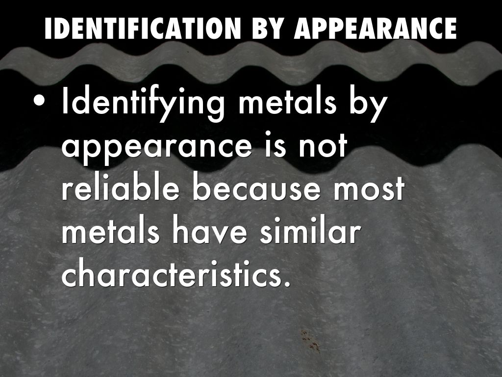 Identifying metals by appearance is not reliable because most metals have similar characteristics.