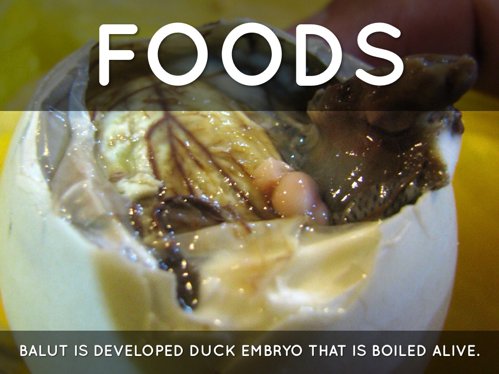 BALUT IS DEVELOPED DUCK EMBRYO THAT IS BOILED ALIVE.
