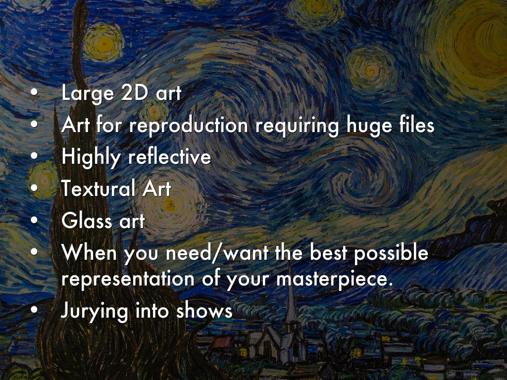 Tips on photographing your own artwork whether it is 2D or 3D and recognizing when you need to hire a professional.